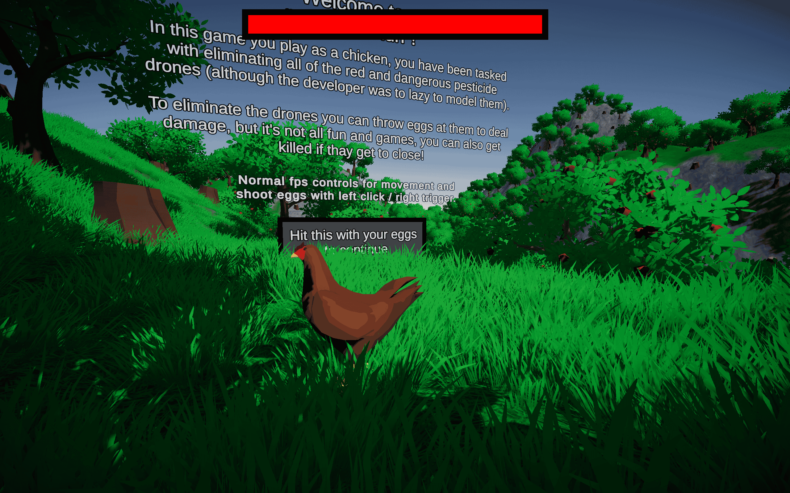 - Egg‑powered combat: Fire eggs with left click or right trigger. Infinite ammo. Zero dignity.